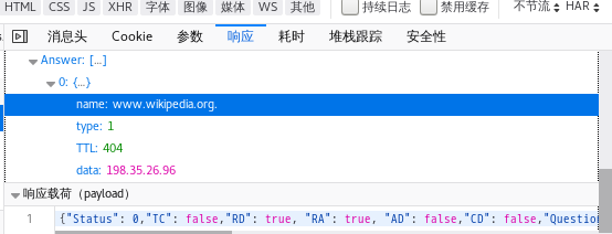 curl -H 'accept: application/dns-json' https://cloudflare-dns.com/dns-query?name=www.wikipedia.org&type=A