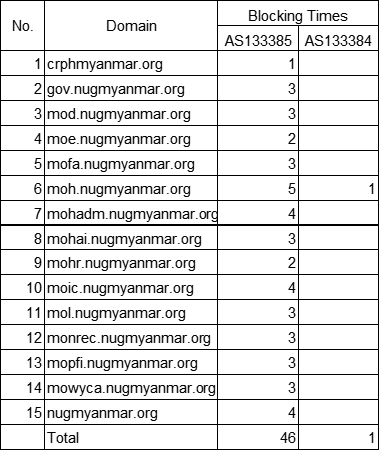 | 3 | Anonymization and circumvention tools | ANON | Atom Myanmar Ltd., Myanmar Information Highway Ltd. | 15 | 41 |