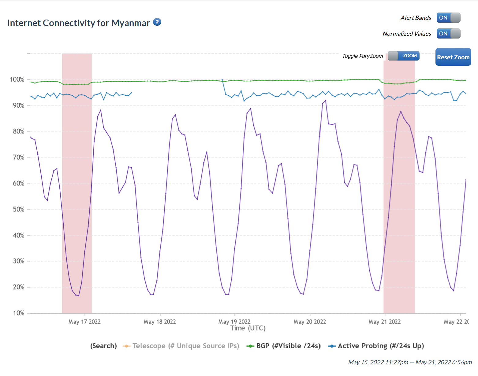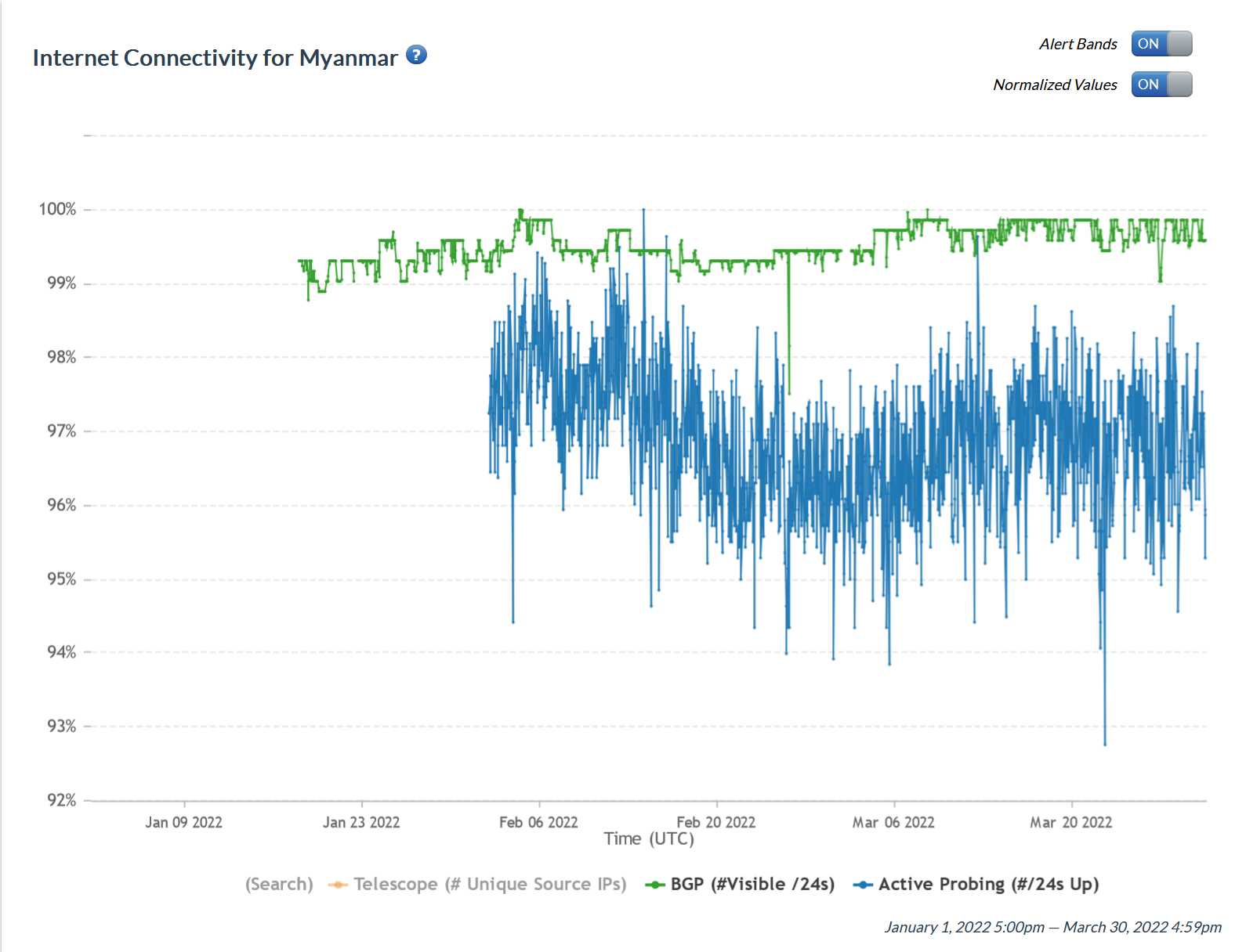 Figure 2: Internet connectivity, Myanmar: February 15, 2022 to February 16, 2022 UTC