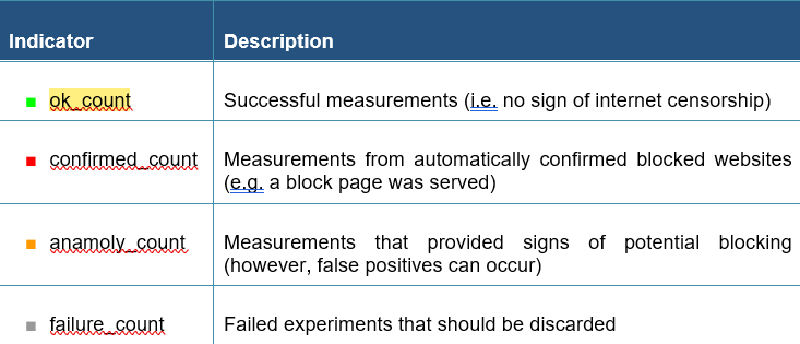 Table 2. Indicators of OONI Measurements