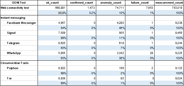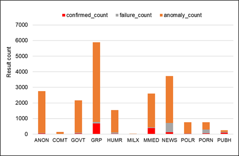 Table 3. The Breakdown of OONI Measurements for Various Tests